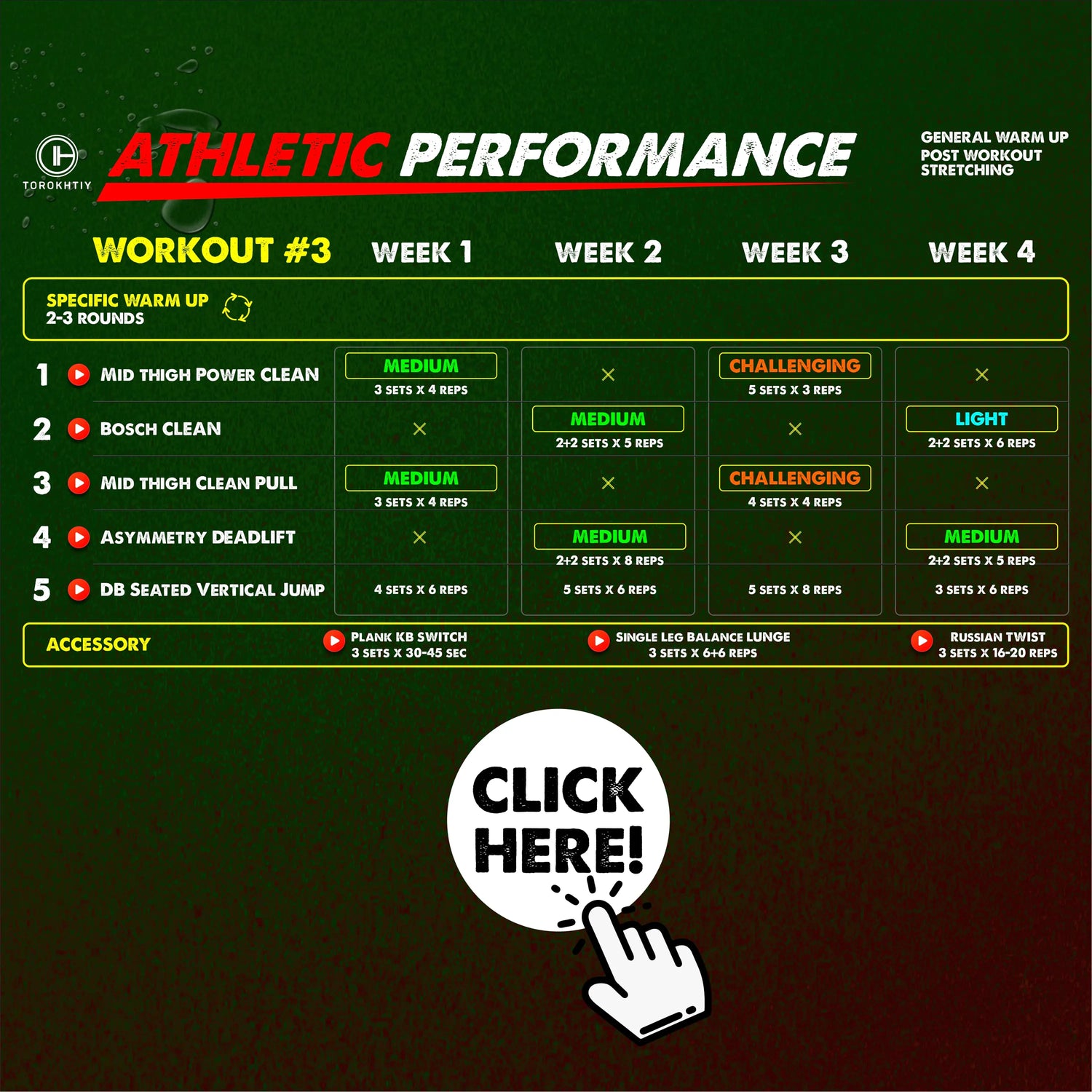 Athletic Performance program is a 12-week intensive training divided into three periods, each spanning four weeks: