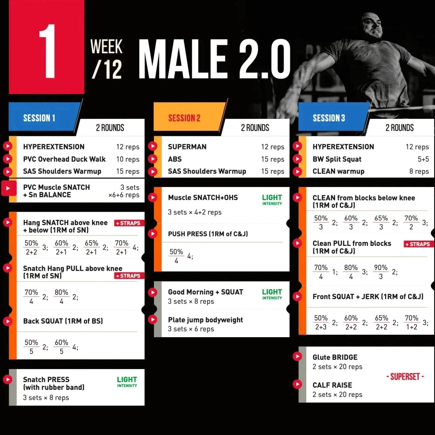 - Week 9-12 be ready to shift to snatch and Clean and Jerk exercises.