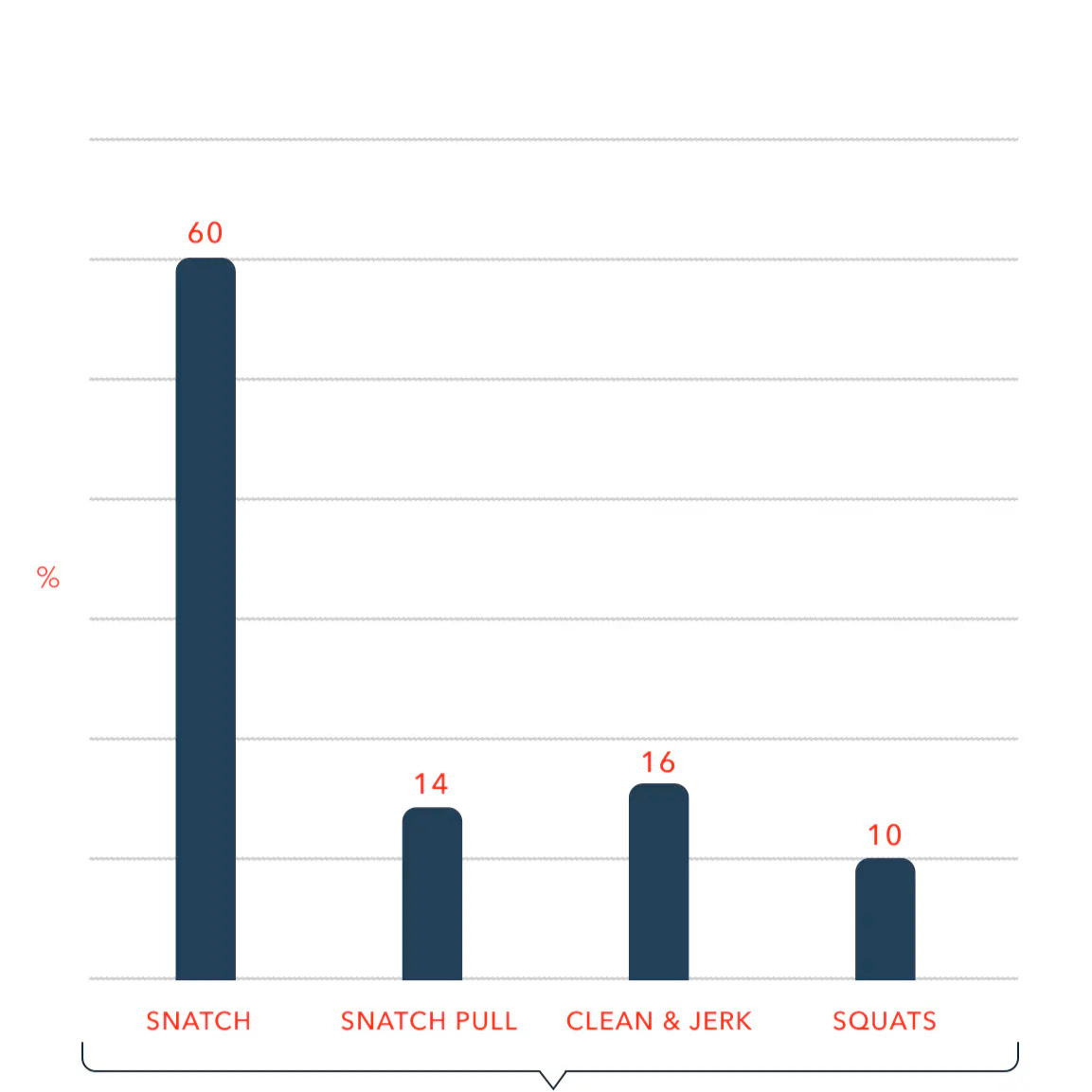 Each program within our Olympic Lifts series is carefully crafted to provide you with an "asymmetric" load, placing a specific emphasis on one of the classic exercises: Snatch, Clean, or Jerk.