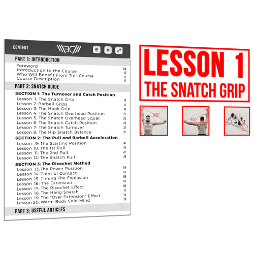 In my seminars, I’ve seen athletes complete a full Snatch after a full day of theory and practical lessons (approx. 10 hours). This Snatch MasterClass is based on the progression I use in my seminars, but I modified it slightly for you to have a much deeper understanding of physical movements and theory. That is why it should take you approximately 3 weeks to complete the entire program.